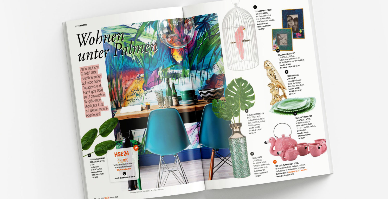 Schöner wohnen: Das Kundenmagazin ermöglicht es, tiefer in die Welt von HSE24 einzutauchen. Zu den vorgestellten Trends werden die entsprechenden Artikelnummern genannt – damit Kunden die Produkte schnell im Online-Shop aufrufen können.